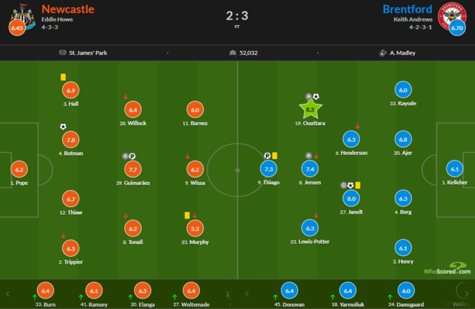 Оценки за матч Ньюкасл – Брентфорд:
