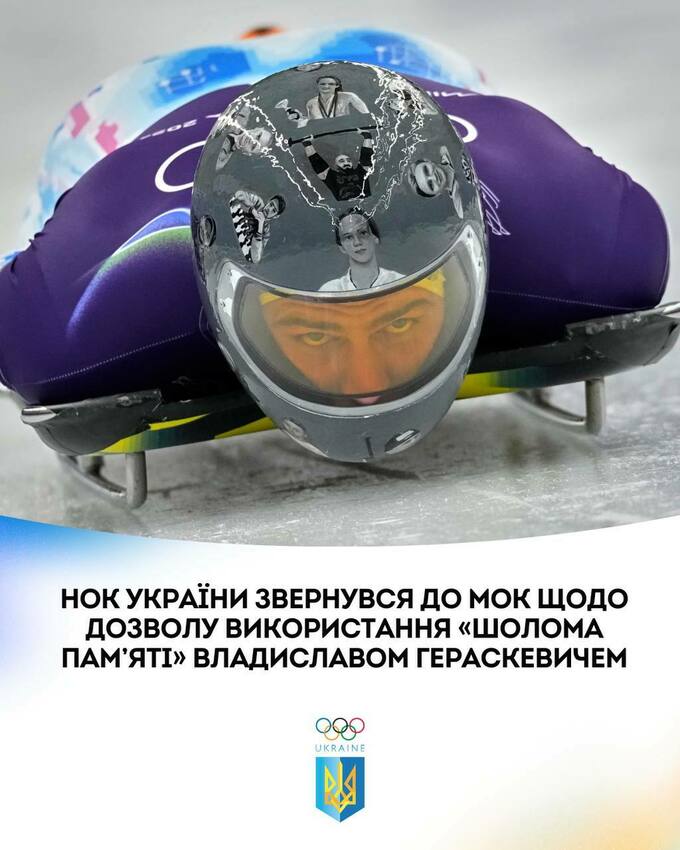 Национальный олимпийский комитет Украины (НОК) официально обратился в Международный олимпийский комитет (МОК) относительно разрешения на использование «шлема памяти» Владиславом Гераскевичем на XXV зимних Олимпийских играх 2026 года в Милане–Кортина.