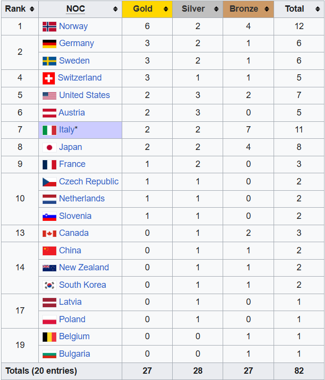 Медальный зачет Олимпиады-2026 по итогам четырех соревновательных дней