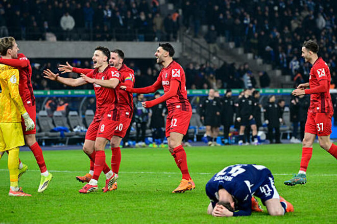Герта Берлин в своем поле принимала Фрайбург. Основное и дополнительное время завершилось со счетом 1:1, а в серии пенальти сильнее оказались гости (пен. 5:4).