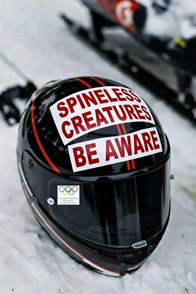 Латвийский депутат Европарламента Рихардс Кольс у себя в соцсетях опубликовал фотографию, которую подписал красноречиво: «Стандартный шлем для руководства МОК».