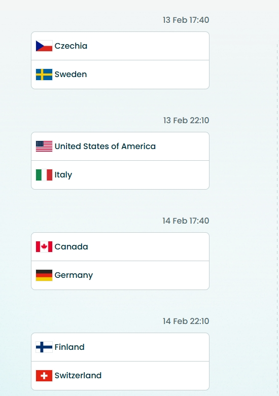 Хоккей на Олимпиаде: стали известны четвертьфинальные пары