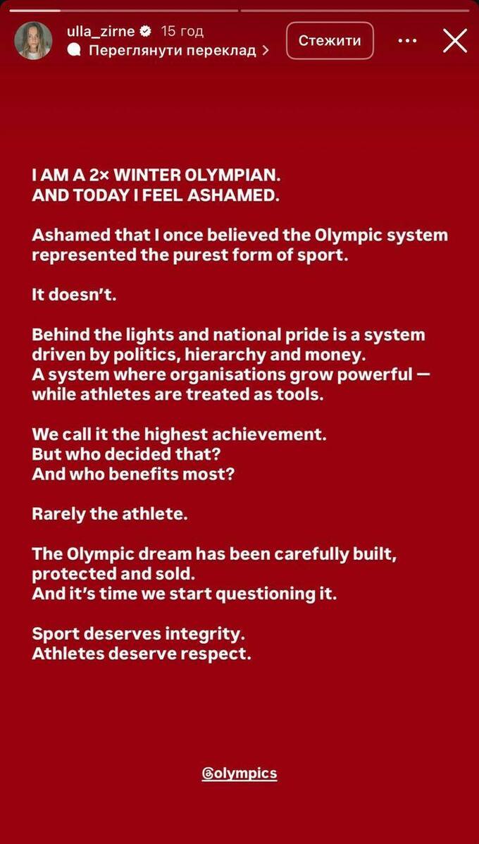 Спорт заслуживает честности. Спортсмены заслуживают уважения», – написала Улла.
