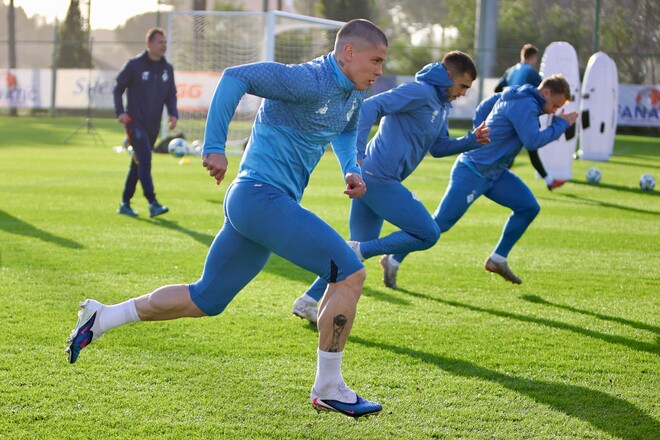 На тренировочное поле Sueno Sports Center динамовцы вышли уже вечером. После интенсивной разминки с барьерами полевые игроки перешли к работе над скоростными характеристиками, выполнив серию спринтов под руководством тренера по функциональной подготовке. В конце сбора скоростные данные игроков определились, о чем свидетельствуют цифры, которые научная группа получает с помощью датчиков.