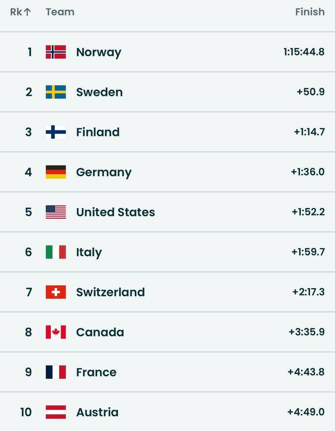Несмотря на досадный эпизод, сборная Швеции ворвалась в топ-3 и получила свои награды. Тройку лучших заперли финские лыжницы.