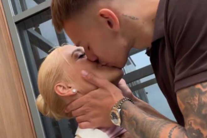 Футболист опубликовал нежное фото с невестой Дарией Квитковой, на котором пара целуется.