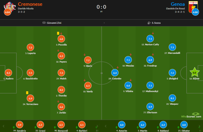 Оценки игроков за матч Кремонезе – Дженоа: