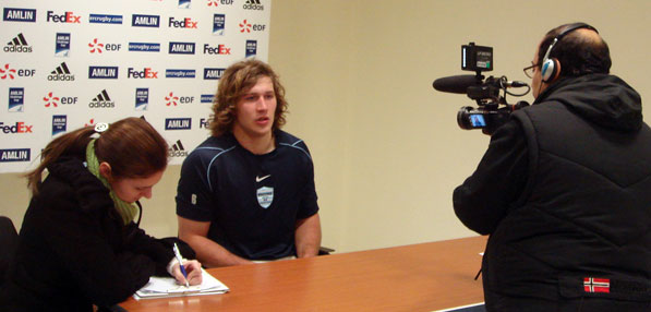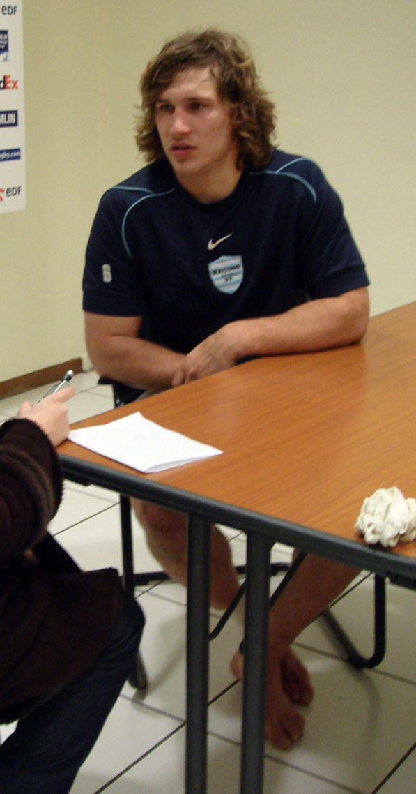 Пол холодный, но после регбийного матча это не чувствуется. На интервью в пресс-центр Франсуа пришел босиком.