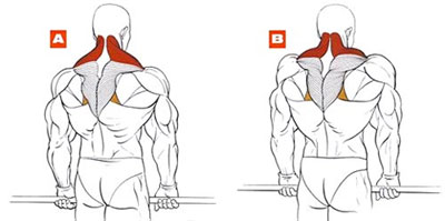 Это упражнение развивает верхнюю часть трапециевидной мышцы, главным образом ее затылочно-ключичные пучки, а также лопаточную.
