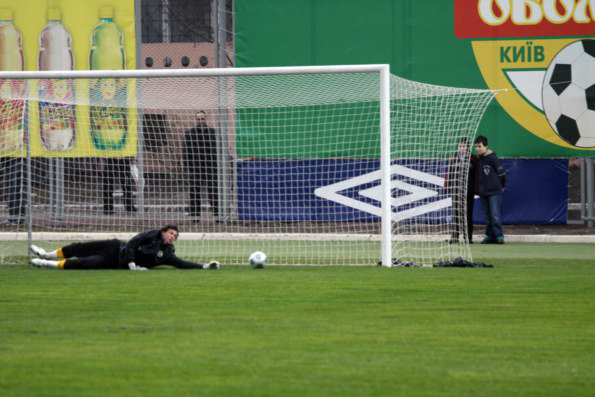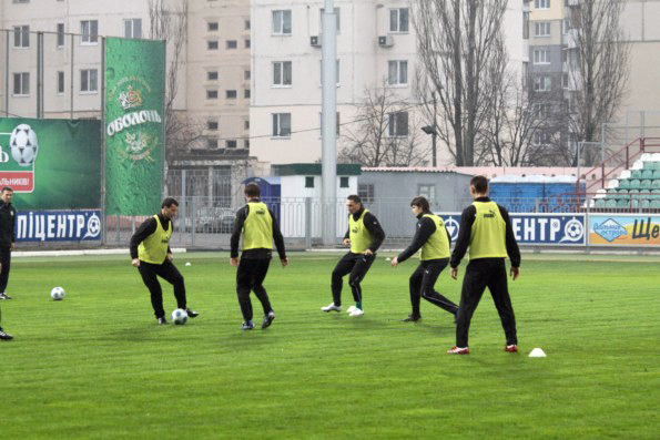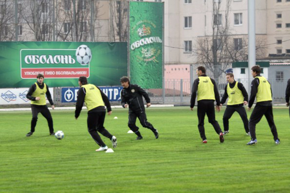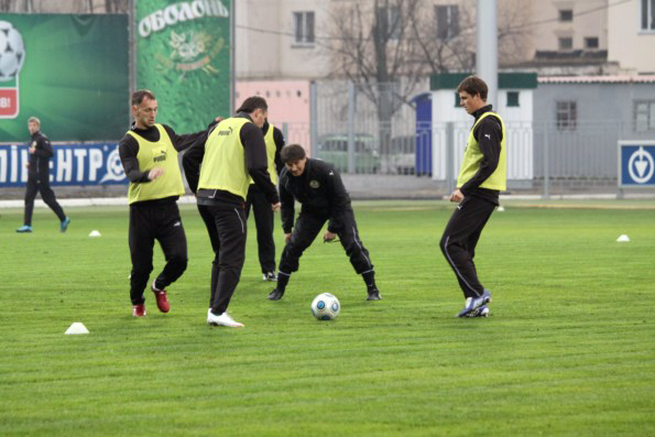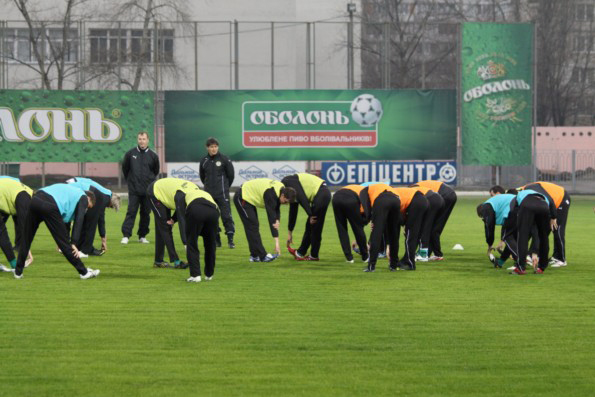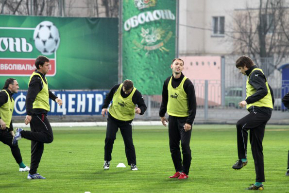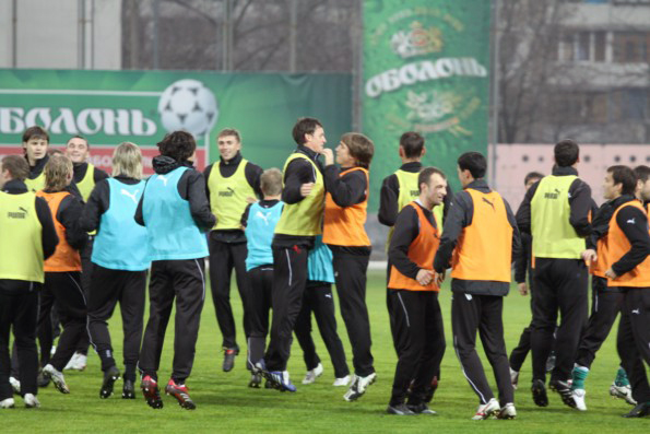 В четверг вечером на стадионе «Оболонь Арена» под легкий моросящий дождик состоялась открытая тренировка ФК «Оболонь», которая накануне очень серьезного поединка против донецкого «Шахтера» должна оказаться как нельзя кстати – и команда «развеется», и болельщики «подтянутся». В этот день болельщиков было немного, надеемся, что в субботу «оболончики» «зарядят» команду на победу!
