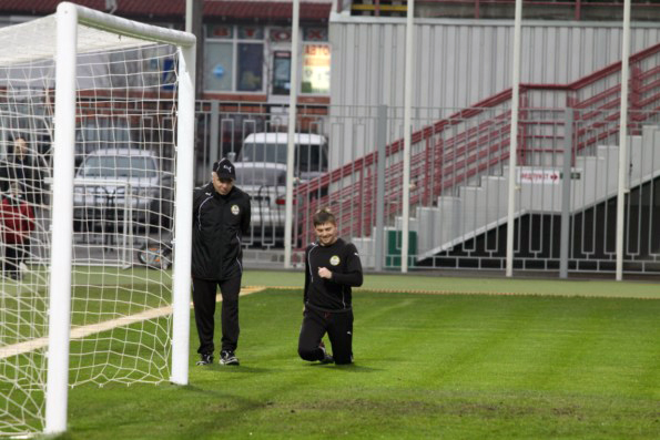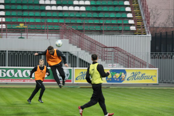Итак, в самом тренировочном процессе ничего сверхъестественного не наблюдалось – «стандартные» пробежки, двухсторонки, «собачка». Принял участие в тренировке и наставник пивоваров Сергей Ковалец, с азартом поигравший в «квадрат».