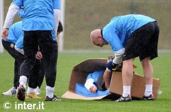 Не прошел бесследно день первоапрельского дурака и для футболистов миланского «Интера». Специальный розыгрыш для товарищей по команде изобрел сербский полузащитник Деян Станкович. Он вышел на тренировку в коробке. В ней его и нашли Камбьяссо и Милито.