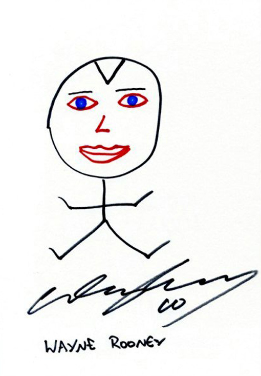 Вот что женщина сказала про Руни, одного из немногих футболистов, добавивших в свой автопортрет краски: «Полагаю, в первую очередь автор известен не благодаря своим художественным талантам. Этот человек изобразил свое лицо в манере Пабло Пикассо: очень большая голова и выразительные глаза со ртом. Что интересно, он использовал синий маркер для глаз и красный для рта. Это показатель его чувственности».