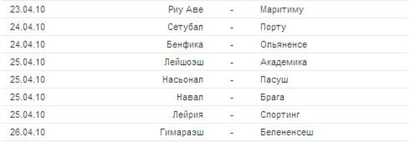 В финале Кубка встретятся «Порту» и «Чавес» из второй лиги. Пока не ясно кому достанется четвертая путевка в ЛЕ – финалисту Кубка или шестой команде чемпионата, но ясно одно – любую из этих команд, которые претендуют на 3 и 4-ю путевку в ЛЕ «Металлист» и «Днепр» должны обыгрывать «шоб аж гай шумів»!