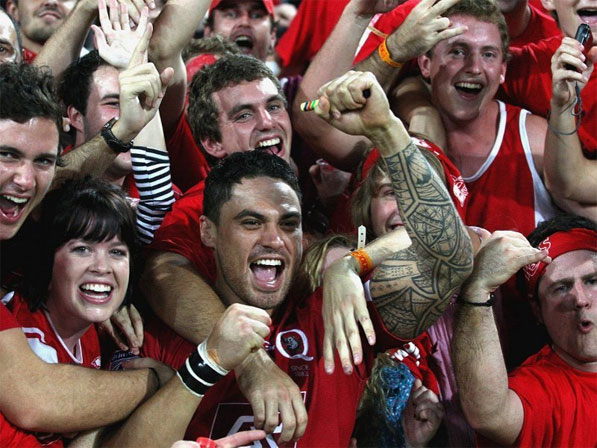 Джейк Шац празднует с брисбенскими болельщиками