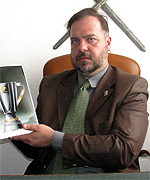Їхнім автором є Олекса Руденко (на фото) − найпопулярніший серед вітчизняних геральдистів творець призів та нагородної атрибутики. Його руками було створено Кубок чемпіонів України з футболу, Кубок України з футболу, медалі чемпіона і призерів змагань.