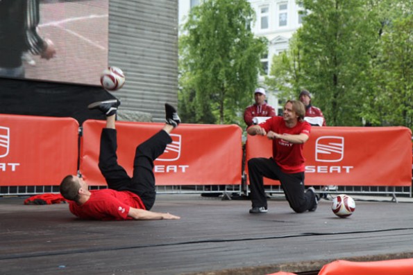 Официальная фан-зона УЕФА открылась на злачной улице Гамбурга – Рипербан. Болельщиков развлекали жонглеры-футболисты. Британцы по-прежнему были в подавляющем меньшинстве.