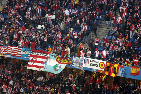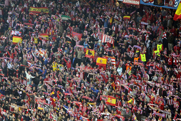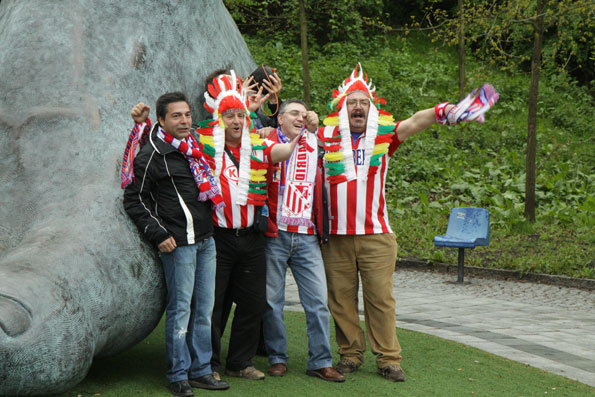 Переодетые в индейцев, болельщики «Атлетико» «разминались» вином и довольно активно позировали перед нашей фотокамерой с самого утра.