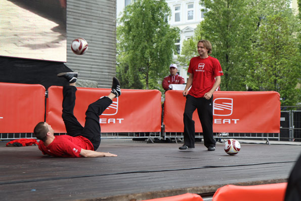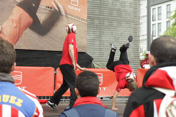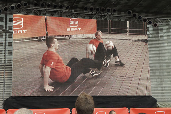 Толпу со сцены веселили футболисты-жонглеры, демонстрировавшие чудеса владения мячом.