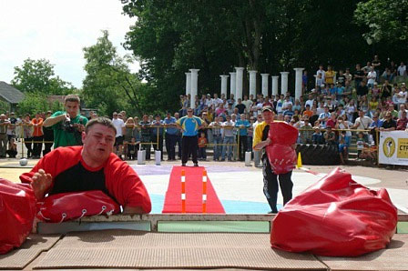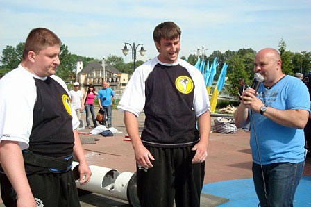 Після «Трак-пулу» в учасників була двохгодинна пауза, оскільки решта вправ фіналу відбулися в амфітеатрі міського парку, де за присутності близько чотирьох тисяч уболівальників претенденти на звання професіоналів продовжили змагання. В естафеті, що складалася із двох етапів - «Прогулянки фермера» (перенесення двох валіз вагою по 115 кг на дистанцію 20 метрів) і перенесення на 10 метрів та закладання на платформу трьох мішків по 80 кг – у трійці найкращих знову були Костенюк і Стахурський. Чернівчанин відіграв бали, програні в «трак-пулі»: причому, якщо у Стахурського лише один пункт, то у Тишецького, який пройшов естафету лише з сьомим результатом, цілих шість. А третім під шалений рев трибун фінішував місцевий богатир Назар Павлів з Івано-Франківська. До речі, вихованець заслуженого тренера України Івана Шарія, котрий свого часу підготував братів Вірастюків.