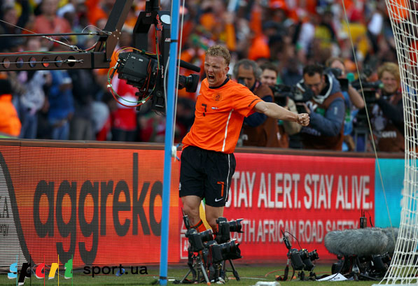В общем, датский план на игру разрушился, а другого плана у них не оказалось. Точнее говоря, большими силами датчане не могли добиться у чужих ворот большей остроты. Оранжевые же спокойно контратаковали – без лишнего напряжения. Несколько неплохих моментов не увенчались голами – Соренсен отбил удар Ван Боммеля в верхний угол, Ван Перси неточно пробил головой метров с 8-ми, Снейдер пробил издали и мяч приземлился на перекладину. Наконец, удалось забить второй мяч. Элия выскочил один на один, технично пробросил мяч в дальний угол, но попал в штангу. От нее мяч пожелал отскочить к Кейту, а не двум датским защитникам.