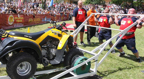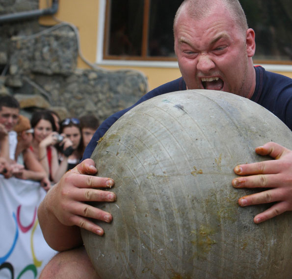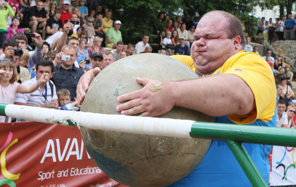 Очень захватывающим получилось финальное состязание под название пулл-пуш. Команды по три представителя с каждой стороны увесистой балки пытались вытолкать соперника за пределы площадки прямоугольной формы. В первом сете украинские богатыри ценой неимоверных усилий сумели сдержать безумный напор сборной Европы. Балансируя на грани площадки, команда Украины сыграла тактически грамотно, резко развернув соперника в сторону. В финальной схватке украинская сторона учла ошибки и руководствовалась принципом: лучшая атака – нападение. Получилось довольно эффектно. Сборная Европы была выдворена за пределы площадки в считанные секунды!
