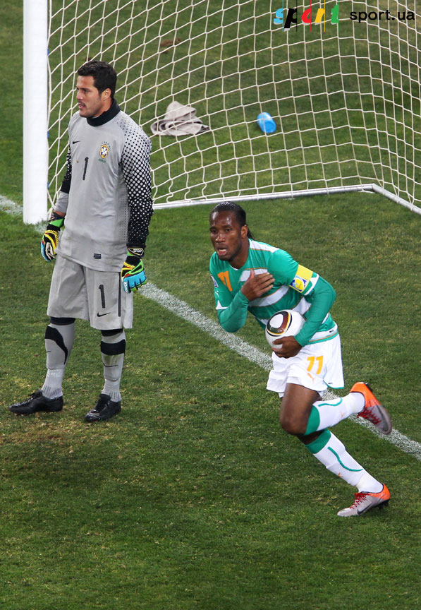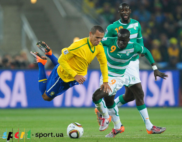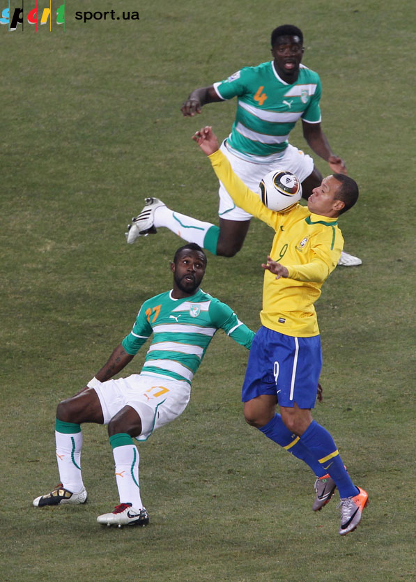На этом игру можно было заканчивать (еще одну красивую комбинацию едва не завершил голом Кака – попал во вратаря) и для бразильцев такой вариант был бы просто отличным. Но оставалось еще целый полчаса, которые стали довольно непростым периодом для подопечных Дунги. Во-первых, Кот д'Ивуар забил свой первый гол на ЧМ. Дрогба отлично пробил головой после навеса Яя Туре. Кстати, ранее Дидье едва не забил в промежутке между вторым и третьим бразильскими мячами, но чуть-чуть не попал в правый угол.