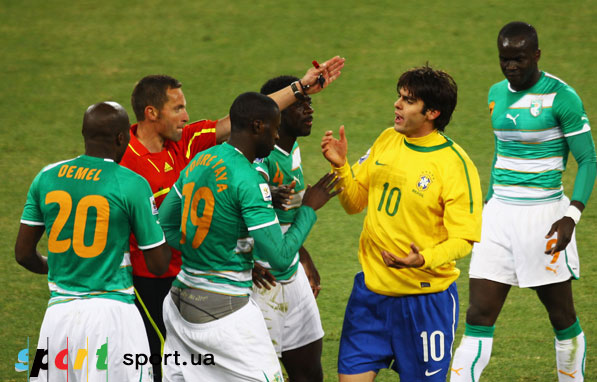 Ну а помимо гола «слоны» отметились рядом моментов достаточно грубой игры. На то они и слоны. Впечатляюще выглядела накладка, сделанная Бастосу, досталось и другим бразильцам. Самое смешное, что удаление при этом заработал Кака. Сначала он получил желтую карточку за незначительное участие в выяснении отношений, а спустя три минуты был удален. Кейта врезался в бразильца и упал, изображая жертву отмашки. Повтор показывает, что со стороны Кака никакой отмашки не было, да и вообще этот полузащитник явно не самый грубый футболист современности. Но в данном случае попал под горячую руку судьи. Такое случается.