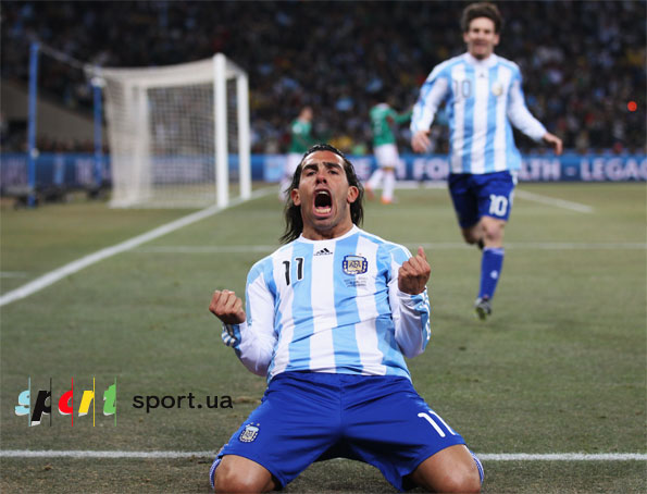Месси сделал передачу на ход Тевесу, Перес выбежал и выбил мяч. Правда недалеко. Месси нанес удар и мяч по дуге нашел голову Карлоса Тевеса(Аргентина), который открывает счет в матче. На повторе явно видно, что Тевес забивает из оффсайда. Мексиканцы прессингуют арбитра, Розетти советуется с лайнсменом и засчитывает гол..