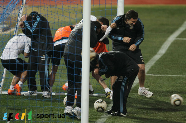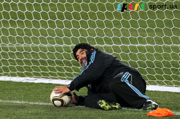 Любимое упражнение Диего Марадоны (расстрел с линии штрафной одной половиной сборной другой) мы уже выкладывали на нашем сайте.
