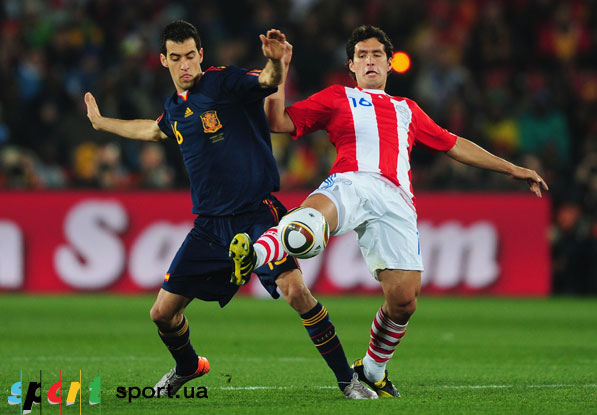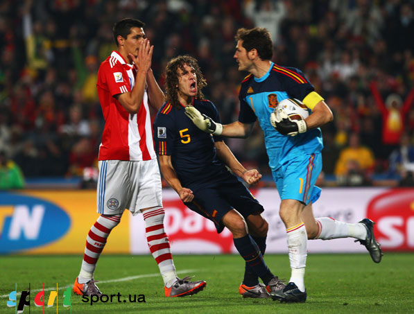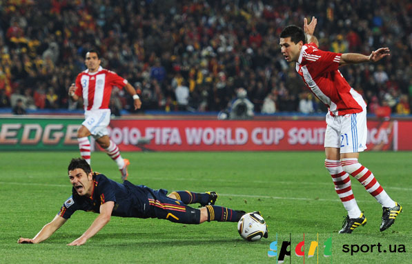 У испанцев за весь тайм почти нечего вспомнить. Дальний удар Хави над перекладиной, попытки Вильи и Торреса войти в штрафную слева и справа. Парагвайцы быстро исправляли свои ошибки и разгуляться испанцам не давали. Умеют они это дело.