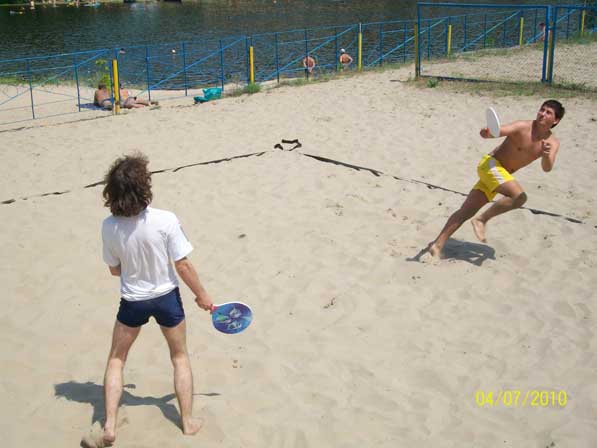 Итак, знакомство c пляжным теннисом состоялось. Соревнования в этой пока еще экзотической теннисной дисциплине (впервые в Украине!) состоялись в воскресенье 4 июля в рамках шестого этапа Пятой Спартакиады Харькова среди СМИ на площадках Журавлевского гидропарка.