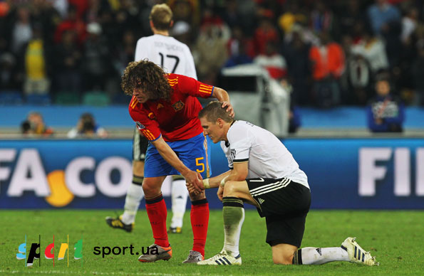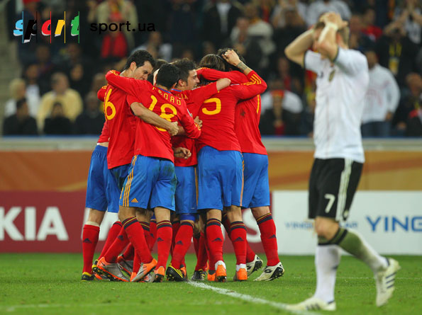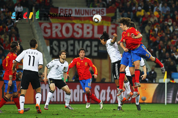 С первых же минут испанцы предстали таким, какими их на этом турнире еще никто не видел. Они захватили инициативу, агрессивно играли впереди, прессинговали. Немцы, на поясах которых уже висели скальпы англичан и аргентинцев, старались воспринимать такие действия соперника, как временное неудобство – отобьем, мол, первый натиск, дальше легче будет. Поначалу было заметно, что Бундестиму такая игра не по душе – ведь мало того, что сдерживать атаки красных фурий было непросто, так еще и собственные контратаки выстраивались не гладким автобаном, как в двух предыдущих матчах, а чем-то похожим на украинские дороги, с которыми им предстоит познакомиться через 2 года. Эти судорожные контрвыпады рывками до ворот Касильяса докатиться практически не имели шансов – Испания грамотно играла в отборе, навязывая постоянный прессинг.