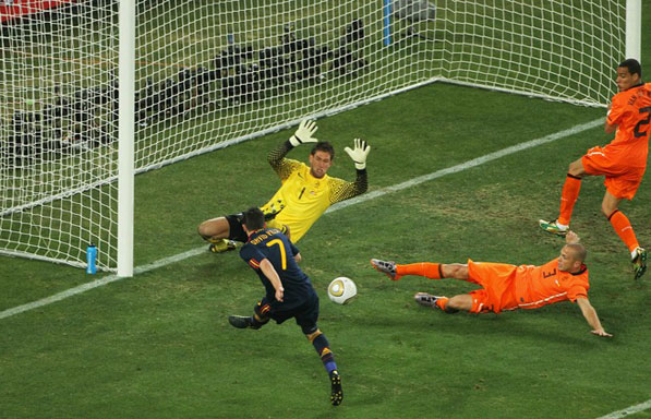 Ван Перси (15). Ван Боммель (22). Де Йонг (28), .Ван Бронкхорст (54), Хейтинга (57), Роббен (84), Ван дер Вил (111), Матийсен (117) - Пуйоль (17). Рамос (23), Капдевилья (67), Иниеста (117), Хави (121)