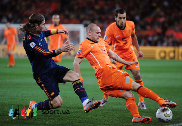 Sport.ua предлагает Вашему вниманию фотоотчет финального поединка чемпионата мира между командами Голландии и Испании.