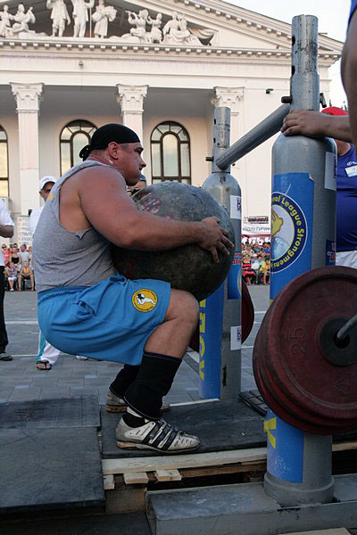 Заключну вправу розпочали росіяни та білоруси, котрі спільними зусиллями змогли двічі перекинути кулю. Проблеми були очевидними: на сонці та гарячому камінні липка речовина, що використовується при піднятті куль, перетворювалася на рідину і не виконувала свого призначення. Тому не кращими були справи і у господарів: кулю зміг перекинути лише один атлет - Володимир Муравльов. Труднощі виникали перш за все із захватом снаряда. Два підйоми проти одного дозволили гостям здобути перемогу престижу.