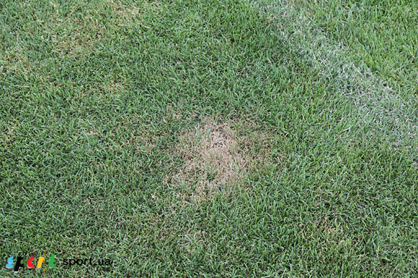 Состояние газона идеальным не назовешь, местами встречаются вот такие «засохлости».