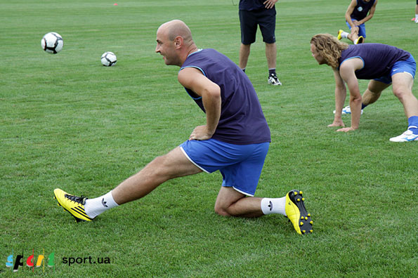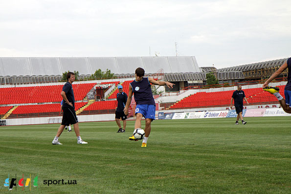 Тренировка «Днепра» началась в свободном режиме. Селезнев, Калиниченко, Коноплянка и другие активисты клуба разминали Лаштувку. А на заднем плане Бессонов пробует на прочность и накачанность местные мячи. Они ему не понравились. Причем абсолютно все. Вердикт главного тренера «Днепра» - недокачанные.