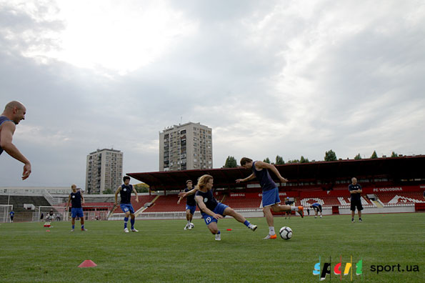 Отправляемся на предматчевую тренировку «Днепра». Все остальные привычные помпезности аля предматчевые пресс-конференции, «Спартак-Златибор» посчитал ненужными.