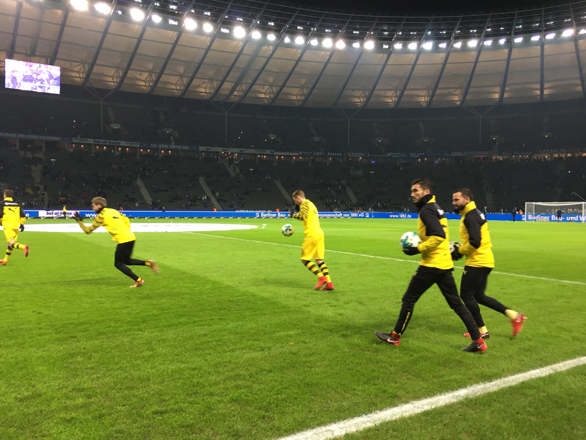 ГОЛ ! Санчо слева ворвался в штрафную Герты. Первый навес не прошел, но со второй попытки Санчо навесил на дальнюю штангу на никем неприкрытого Шинджи Кагаву (Боруссия Д), который из 45-го сектора отправил мяч в ворота.