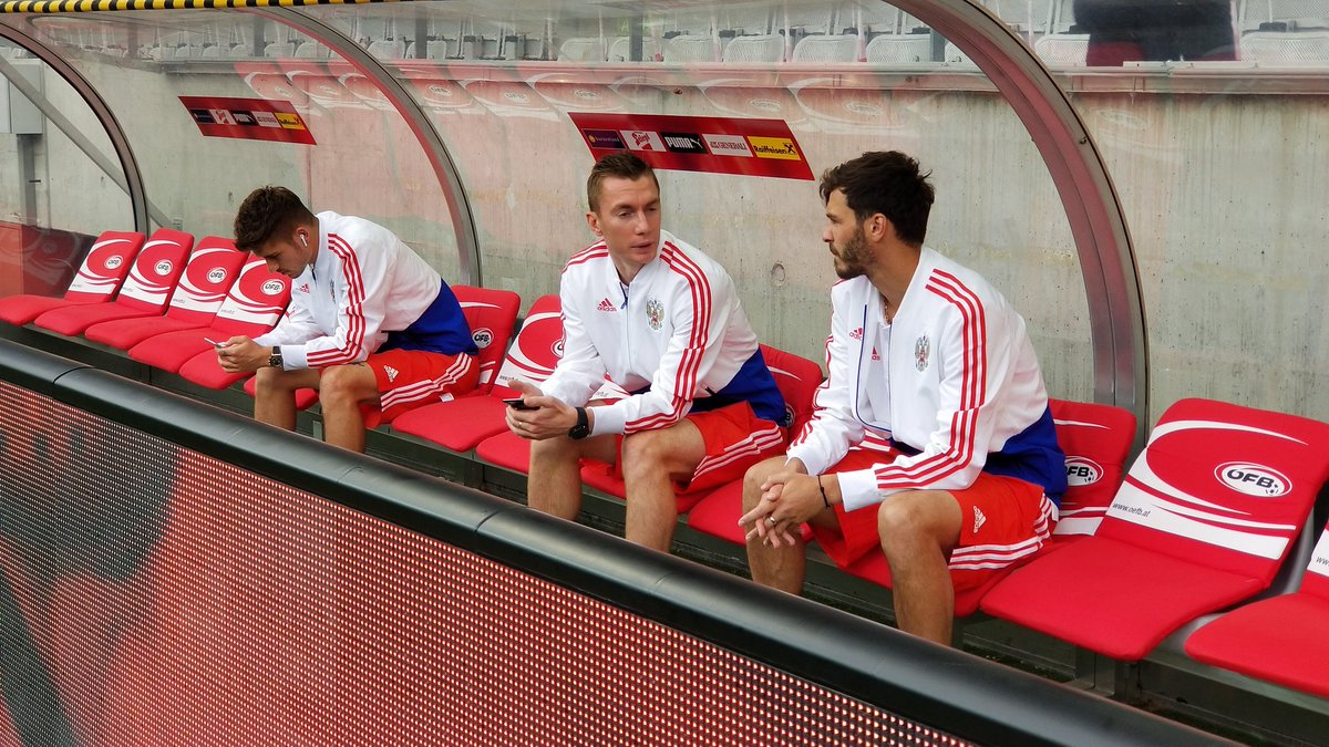 Еще одна попытка забросить мяч в направлении Смолова от Кудряшова потерпела неудачу. Защитники сборной Австрии сверхнадежны.