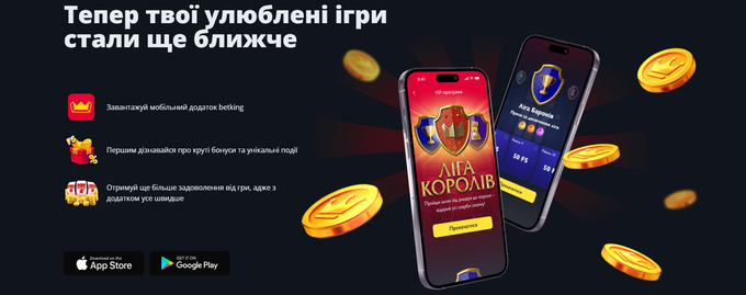 - KingTap — бонусна гра, доступна тільки у додатку.