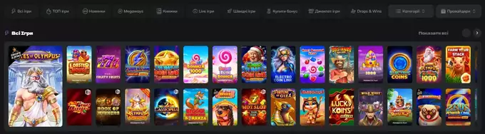 Найпопулярніші слоти січня: Sweet Bonanza, Gates of Olympus, Arctic Coins, Train of Gold, Piggy Tap. Автомати зазвичай можна протестувати у демонстраційній версії. Категорія «Швидкі ігри» теж є частиною слотів. Особливість Plinko, CosmoX та інших класичних представників цього напряму полягає не лише у швидких виграшах, а й у можливості впливати на результати розіграшів.