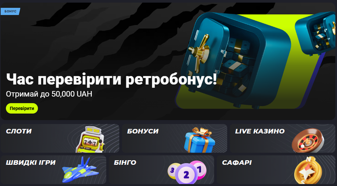 Автомати, live-игри, турніри, швидкі ігри, бінго