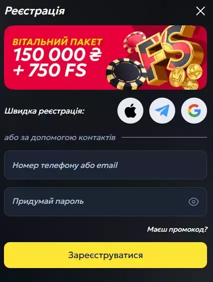 До 150000 UAH + 750 спінів за 5 депозитів |