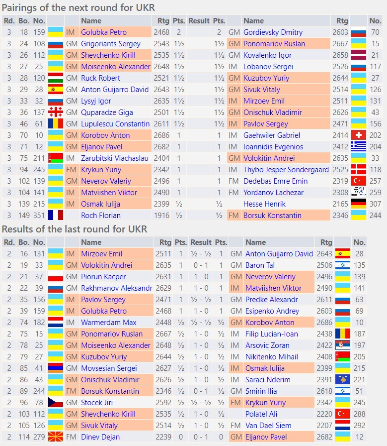Нижче наведені результати 2-го туру та жеребкування 3-го туру для українських шахістів.
