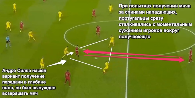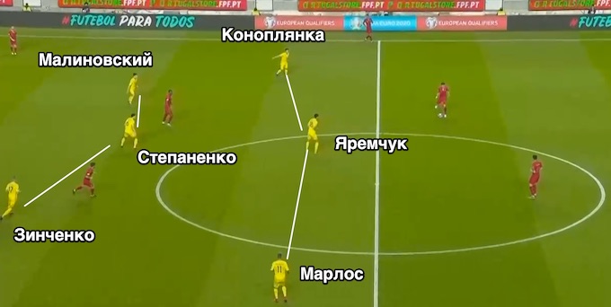 Португалія не є найкращою пресингуючою командою, але виходи з пресингу команди Шевченка точно заслуговують на повагу. Підопічні Шевченка постійно виявлялися або в більшості, або в рівній кількості на різних клаптиках поля. Зінченко, Марлос, Коноплянка, Малиновський, Степаненко - всі вони додали в розумінні один одного і розумінні того, де вони повинні знаходитися в кожній окремій фазі атаки в залежності від місцезнаходження гравців.