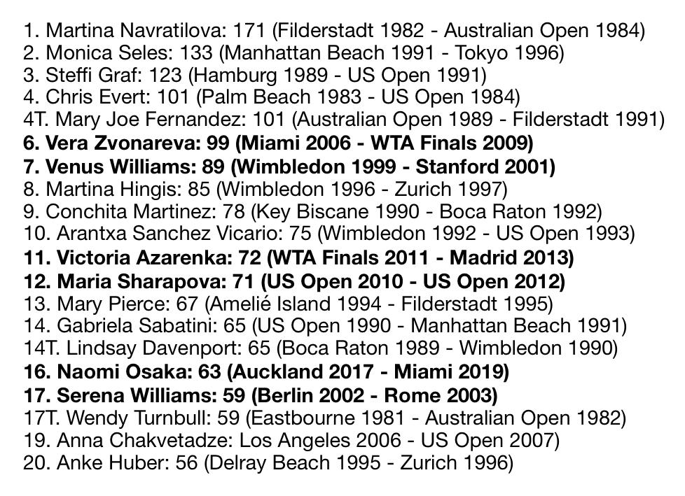 Таким чином, переможна серія японської тенісистки після виграшу першого сету закінчилася. Осака виграла 63 таких матчі, починаючи з турніру в Окленді в 2017 році. Це 16-я за тривалістю подібна серія в історії жіночого тенісу. Із тенісисток, які зараз виступають у WTA-турі, тільки чотирьом вдавалося показати кращий результат.