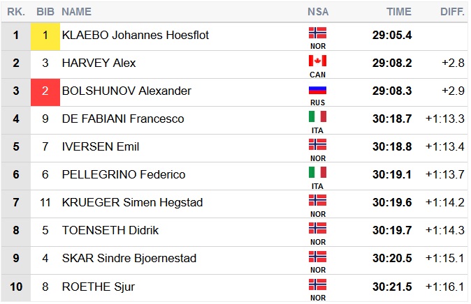 Йоханнес Клебо на фініші випередив Алекса Харві і Олександра Большунова і завоював свій другий поспіль Кубок світу.