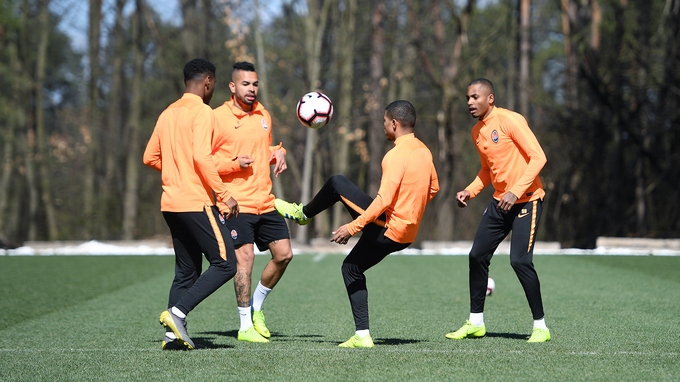 Ранкова сесія пройшла в полегшеному форматі. Паулу Фонсека розділив гравців на групи, і вони брали участь в командних в естафетах. Завтра у футболістів вихідний. «Шахтар» відновить тренування в суботу, 30-го березня.